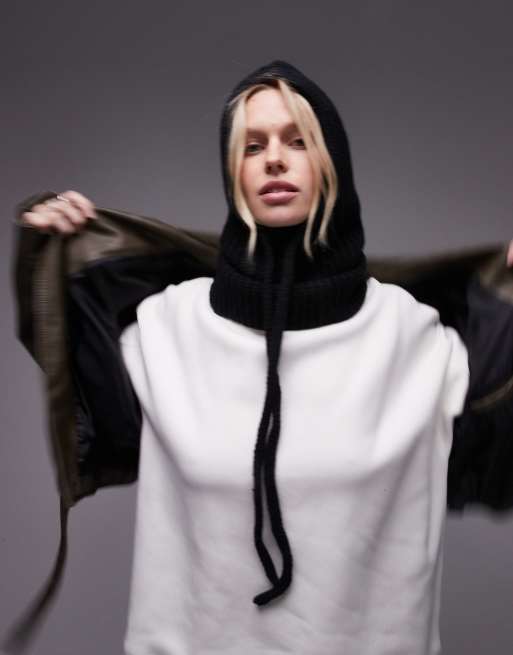 Topshop Hero ribbed balaclava in black
