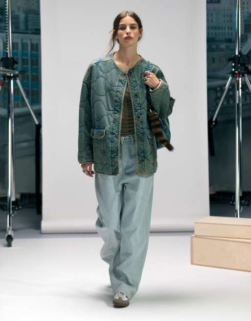 - Non-stretch denim: light-blue wash