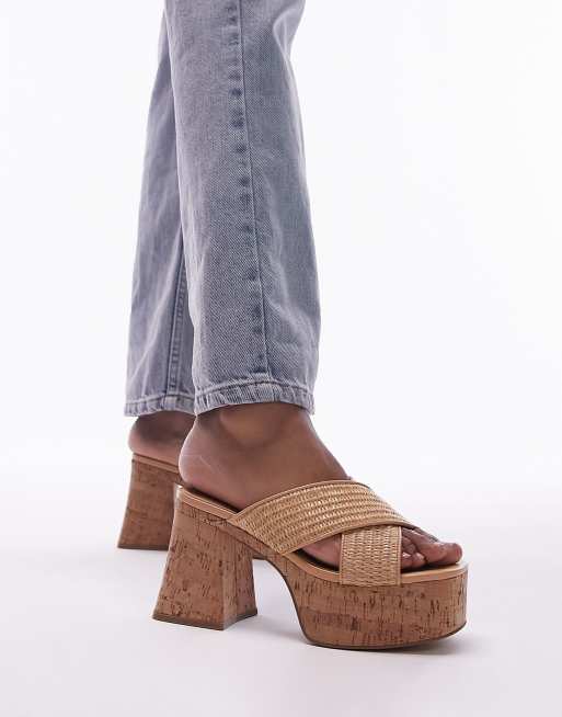 Topshop Iris cross strap heeled mules in natural