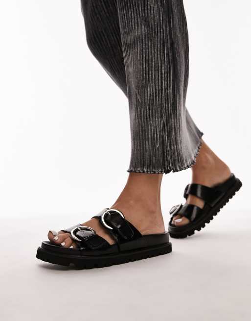 Topshop Jaden sandals with buckle detail in black