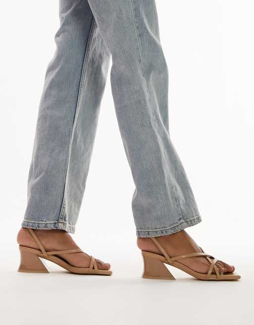 Topshop Jay angular mid heel strappy sandals in stone