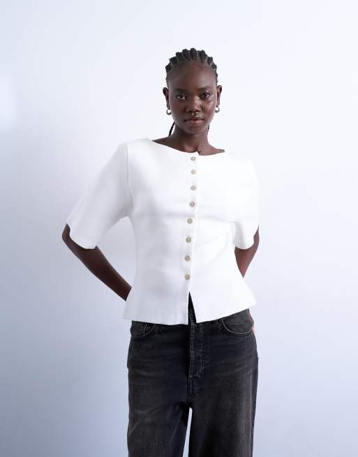 Topshop knitted compact cardigan in ecru