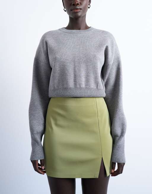 Topshop knitted compact fitted waist jumper in grey