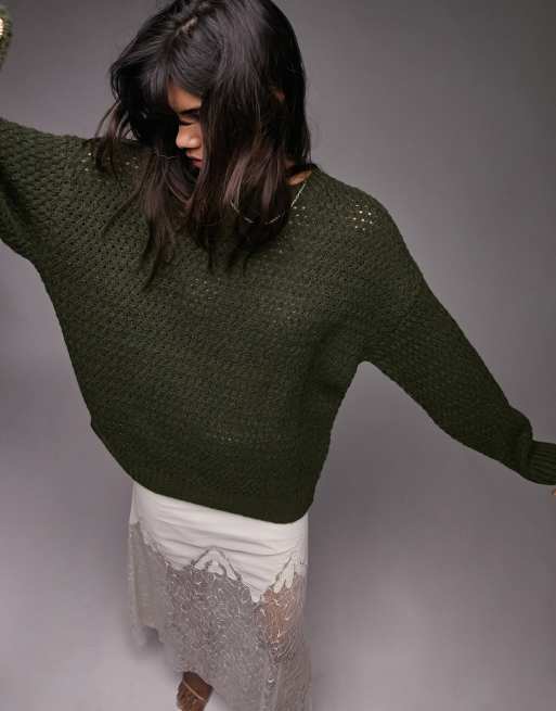 Topshop knitted crew neck jumper in green