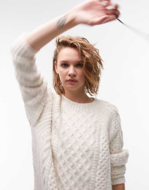 Topshop knitted oversized cable jumper in cream