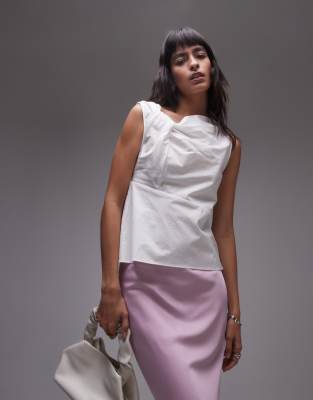 Topshop knot detail sleeveless cotton top in ivory