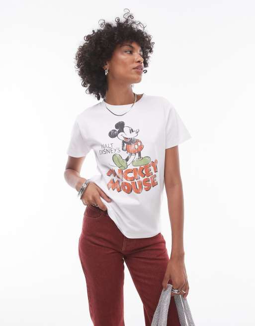 Topshop licence Disney Mickey Mouse slim tee in ecru