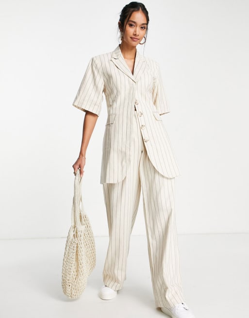 Topshop linen blend set in beige