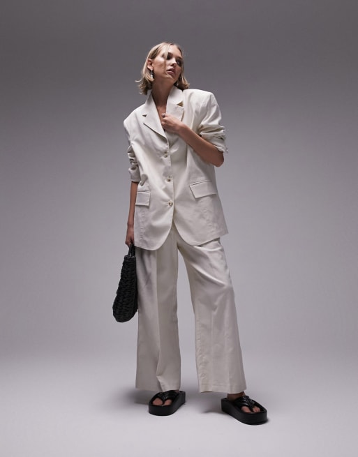 Topshop linen blend suit set in oatmeal