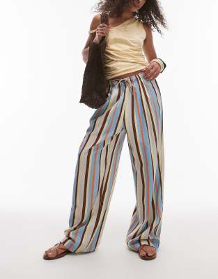 Topshop linen-look balloon pants in multi stripe