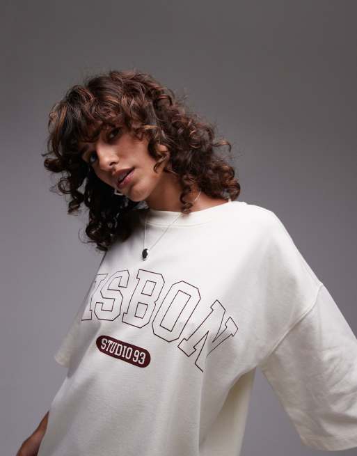 Topshop Lisbon graphic oversized tee in ecru