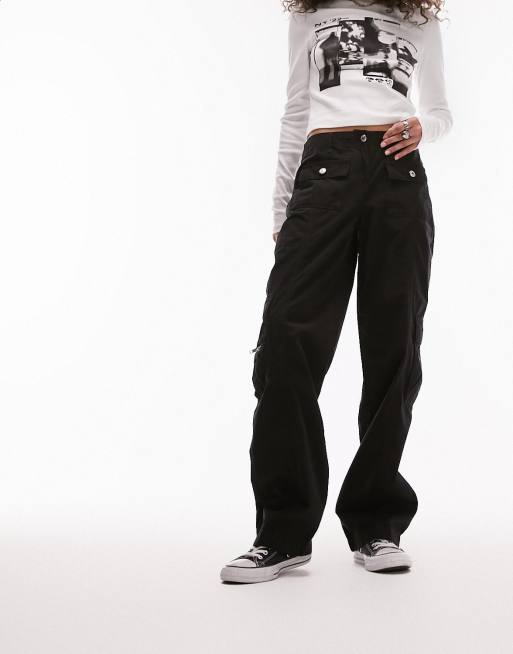 Topshop low rise slim fit cargo pants in washed black