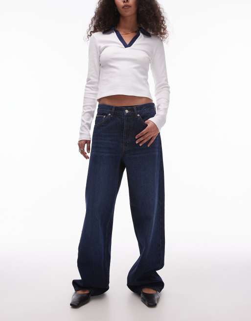Topshop mid rise loose fit jeans in rich indigo