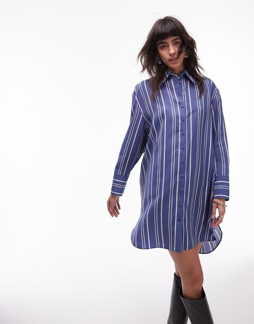 Topshop mini shirt dress with step hem in blue stripe