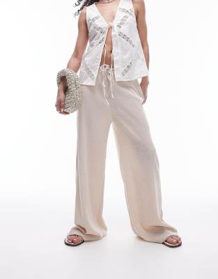 Topshop oversized crinkle drawstring straight leg pants in stone