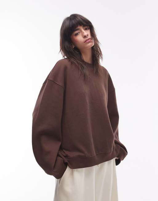 Topshop oversized seamed sweatshirt in dark brown