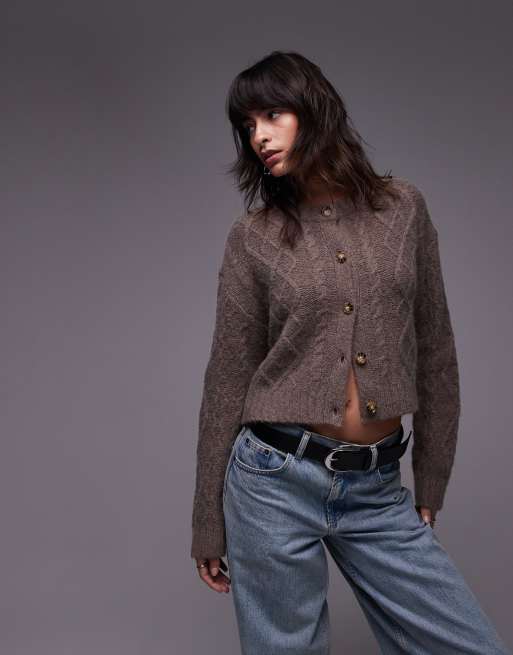 Topshop premium cashmere cable cardi in oat