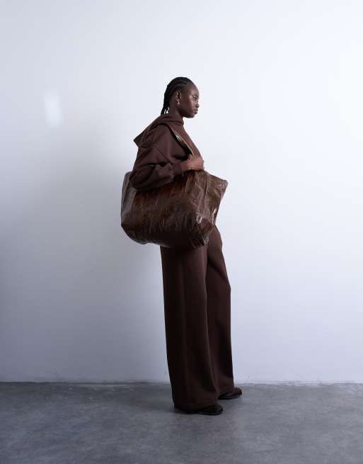 Topshop premium heavyweight straight leg trackies in chocolate brown