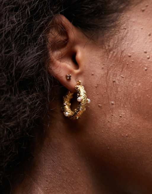 Topshop Prim stainless steel hoop earrings with pearls in gold