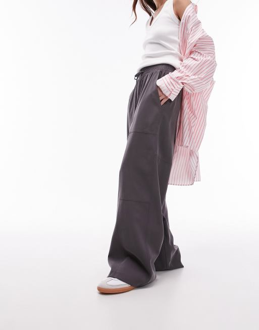 Topshop pull on wide leg pants in charcoal