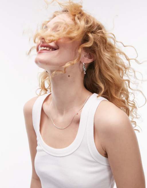 Topshop rib scoop singlet in white