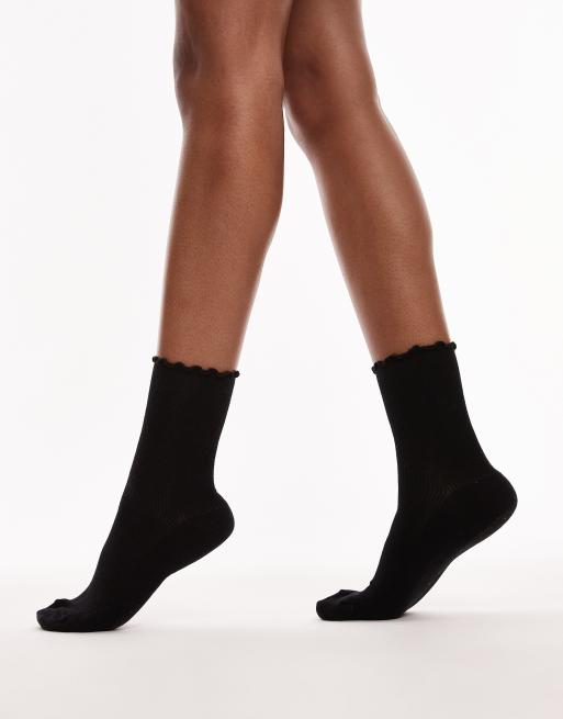 Topshop ribbed frill socks in black