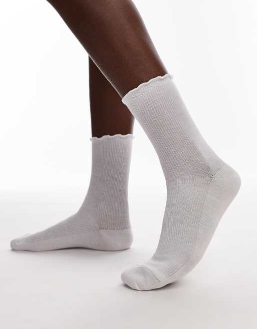Topshop ribbed frill socks in white