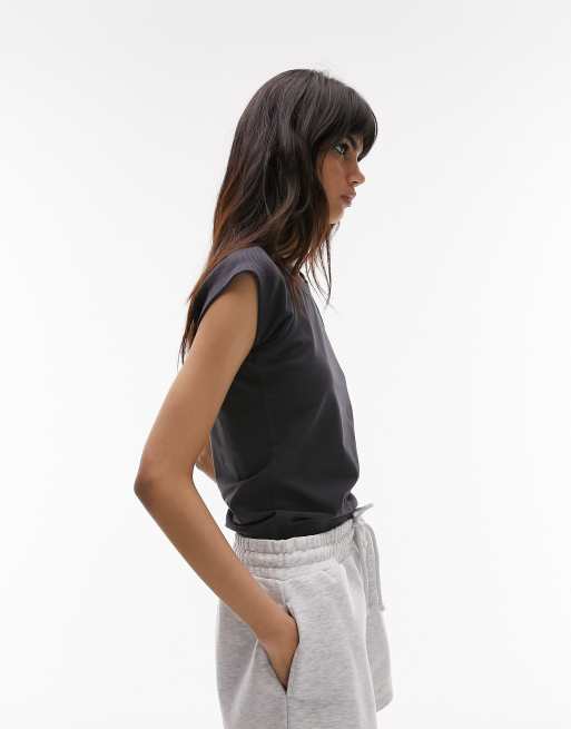 Topshop ribbed mixed tee in washed slate