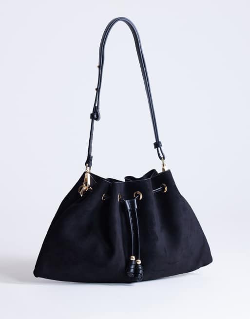 Topshop Sammy medium ruched drawstring shoulder bag in black