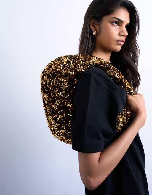 The Santana bag is designed to make a statement, with a crescent silhouette in golden sequins. This style fastens with a zip and sits on the shoulder.Product Code: 148041267