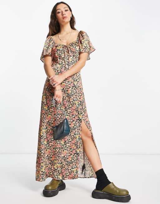 Topshop satin ruched sweatheart midi dress in ditsy floral