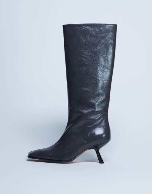 Topshop Scarlett Premium leather square toe knee high boots in grey