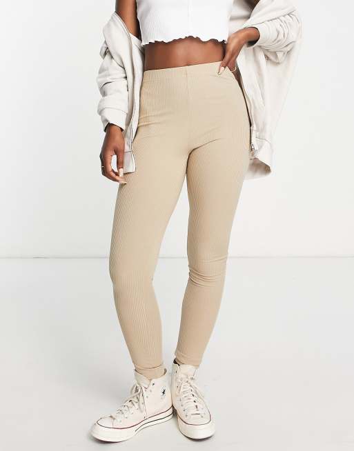 Topshop skinny rib leggings in taupe