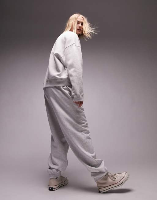 Topshop slouchy oversized cuffed trackies in grey marl (part of a set)