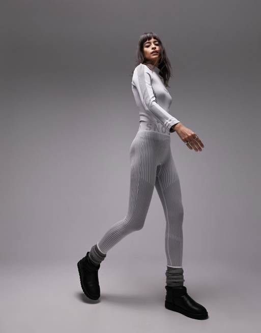 Topshop Sno ski seamless base layer ribbed leggings in grey (part of a set)