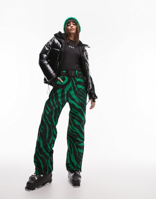 Topshop Sno straight leg ski pants in green zebra print