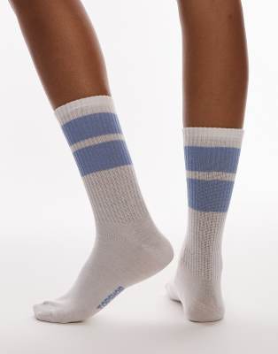 Topshop sporty ribbed socks with light blue stripes in white