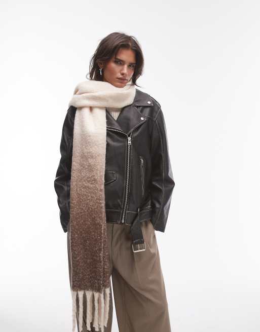 Topshop Sydney blanket scarf in cream with chocolate detail