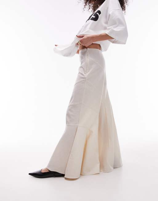 Topshop tiered disjointed maxi skirt in ivory