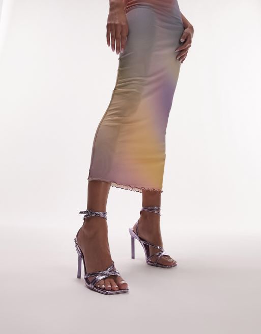 Topshop Wide Fit Ellie square toe barely there heeled sandals in lilac