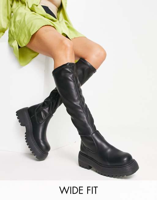 Topshop Wide Fit Tasha chunky under the knee boots in black