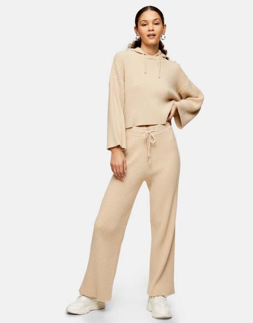 Topshop wide-leg soft ribbed pants in rust
