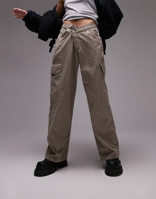 Topshop wrap front wide leg utility pants in mushroom