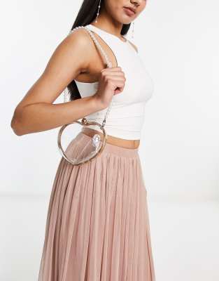 True Decadence clear heart clutch bag with faux pearl handle