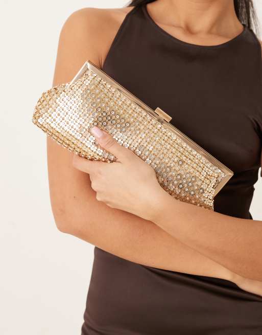 True Decadence floral sequin long clutch bag in gold