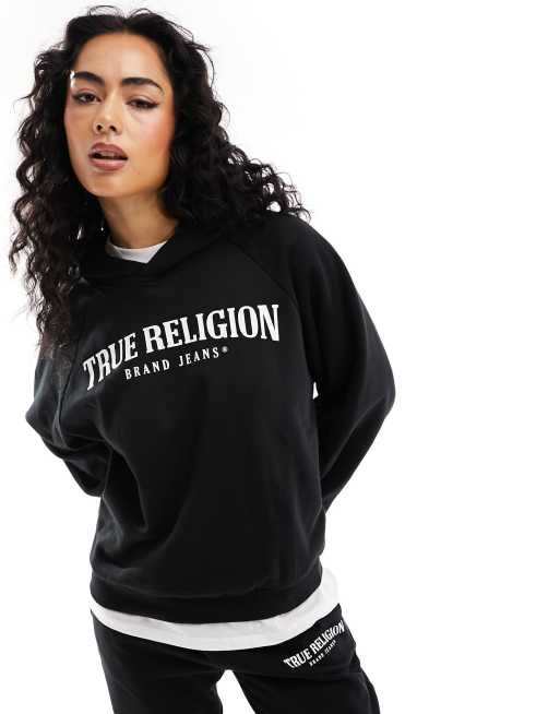 True Religion arch logo boyfriend hoodie in black (part of a set)