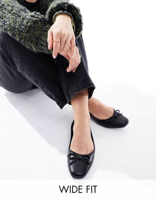 Truffle Collection Wide Fit bow detail ballet pumps in black