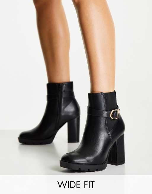 Truffle Collection Wide Fit heeled ankle buckle boots in black