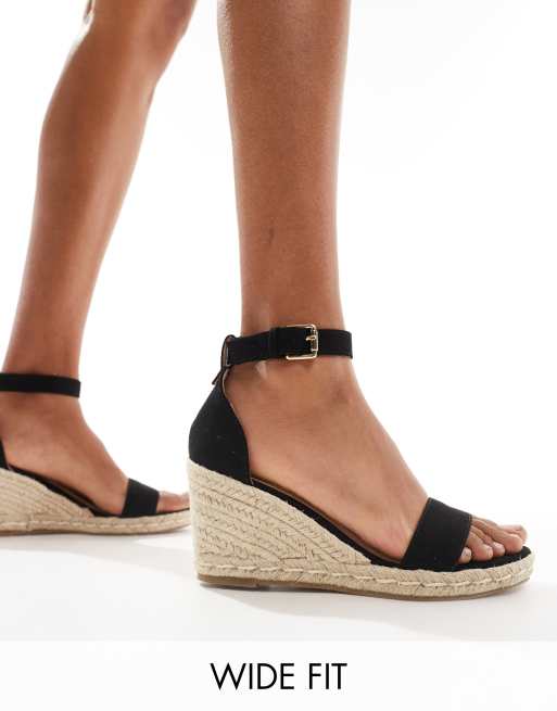 Truffle Collection Wide Fit jute wedge heeled espadrilles in black