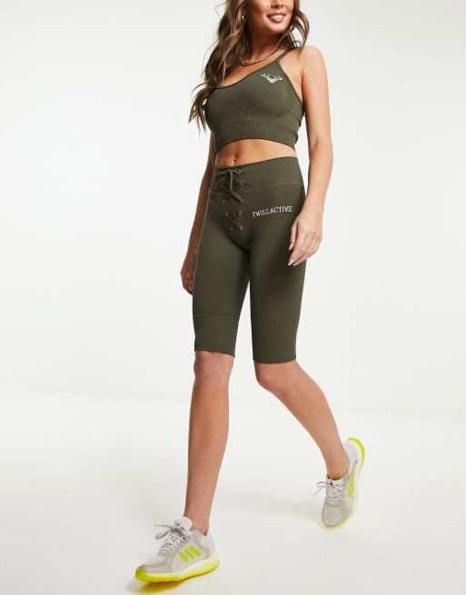 Twill Active tie waist seamless shorts in khaki - DGREEN